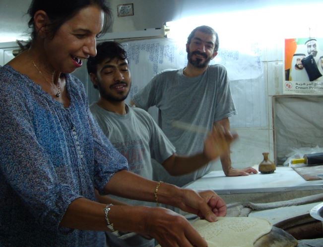 There was one motto, though, that was explicit. Jayne would often say “It never hurts to ask.” It could be bakers in Abu Dhabi making naan in a storefront window. “I bake a lot of bread, would you let me handle your naan dough.” It never hurts to ask, so the bakers welcomed her into the shop to work the dough.